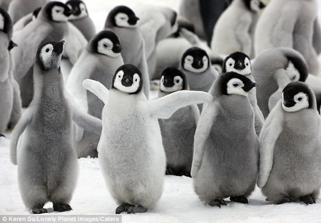 Keren said: 'I love taking pictures in the snow just for the thrill of it. I went to the remote Iles de la Madeleine in East Canada to photograph the Harp Seals but I had to be patient because it's only accessible by helicopter and the weather was unpredictable. It's all about ME! A young Emperor Penguin takes his cue centre stage from the camera on Show Hill Island in Antartica